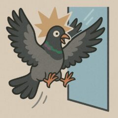• 鳩やカラスなどが窓ガラスや反射面に衝突する事故(特に透明ガラスやミラーガラスに多い)
