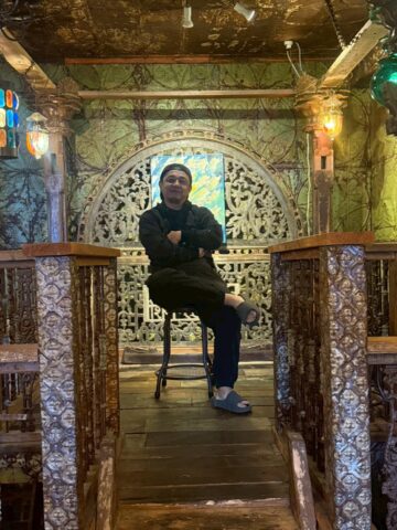 ここのカフェはユニークで独創的で芸術的、異国情緒あふれる雰囲気を醸し出して、桜島と海が目の前に見えるロケーションは最高でした。